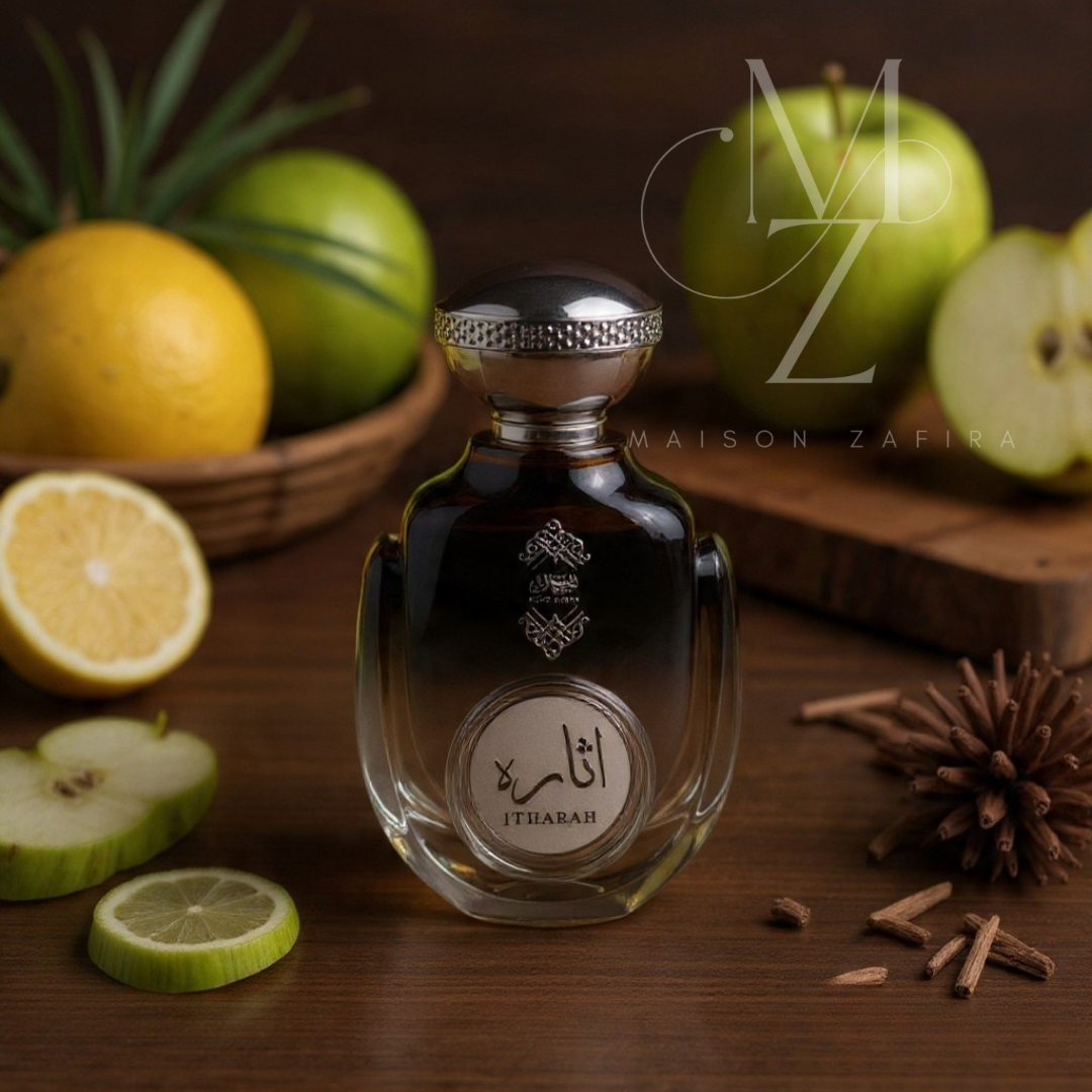Itharah Men de Gulf Orchid est un parfum frais et dynamique, pensé pour l’homme qui recherche une fragrance propre, élégante et quotidienne. L’ouverture mêle citron et notes de feuilles pour une fraîcheur immédiate et revigorante. Le cœur révèle une pomme croquante associée à une base aqueuse, offrant une sensation de propreté moderne et légère. Le fond boisé, composé de bois de cèdre et de bois sec, apporte profondeur, masculinité et tenue.