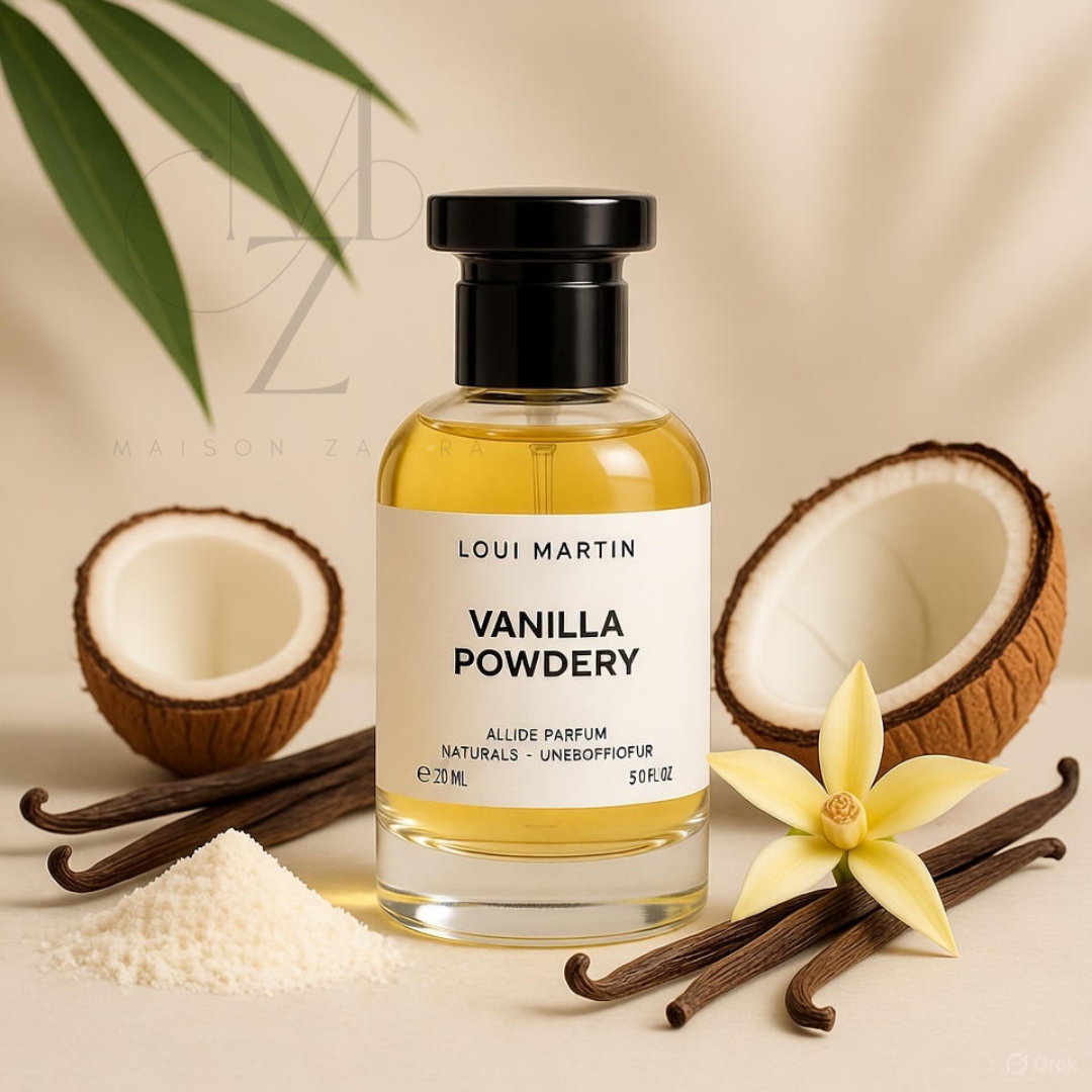 Vanilla Powdery est un hommage à la sensualité de la vanille dans toute sa splendeur. Dès les premières notes, la poudre de noix de coco et la fleur de vanille dévoilent une douceur enveloppante. Le cœur, riche en vanille de Madagascar et en absolu de vanille, révèle une chaleur sucrée irrésistible. En fond, le musc, les notes boisées et la noix de coco prolongent un sillage à la fois crémeux et addictif. Un parfum parfait pour les amoureuses de senteurs chaleureuses et réconfortantes.